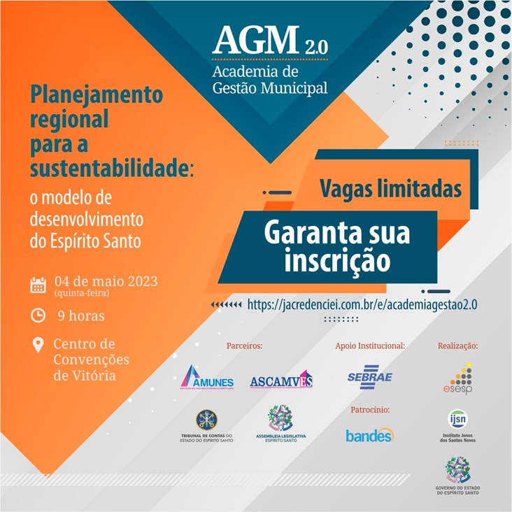 A Academia de Gestão Municipal 2.0 tem o patrocínio do Banco de Desenvolvimento do Estado do Espírito Santo (Bandes) e o apoio institucional do Serviço de Apoio às Micro e Pequenas Empresas (Sebrae). A Assembleia Legislativa do Espírito Santo, o Tribunal de Contas do Estado do Espírito Santo, a Associação dos Municípios do Espírito Santo (Amunes) e a Associação das Câmaras Municipais e de Vereadores do Espírito Santo (Ascamves) são parceiros do projeto.