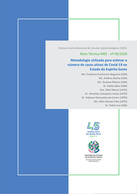 Nesta Nota Técnica do Núcleo Interinstitucional de Estudos Epidemiológicos (NIEE), apresentamos a metodologia de estimativa de casos ativos de Covid-19 utilizando dados do e-SusVS, sistema de notificação compulsória de doenças, agravos e eventos de saúde realizado por serviços de saúde público e privado em todo o território capixaba. O sistema iniciou suas atividades em 30 de março de 2020 gerido pela vigilância sanitária da SESA/ES.