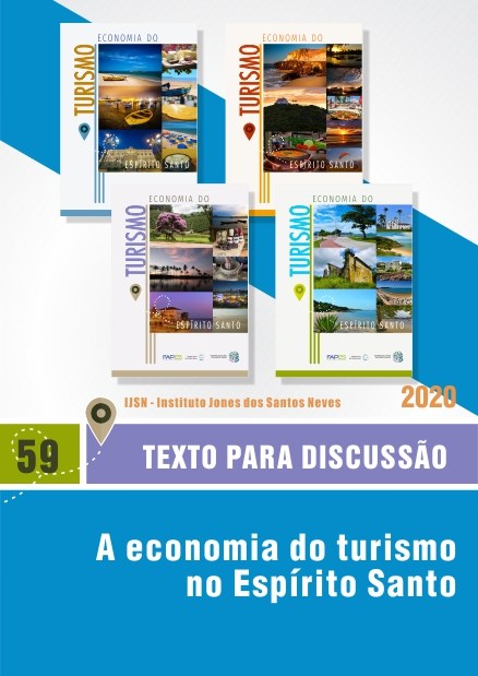 Este documento é resultado do projeto Economia do Turismo no Espírito Santo, uma parceria entre o Instituto Jones dos Santos Neves (IJSN), a Secretaria de Turismo do Estado do Espírito Santo (SETUR-ES) e a Fundação de Amparo à Pesquisa e Inovação do Espírito Santo (FAPES).